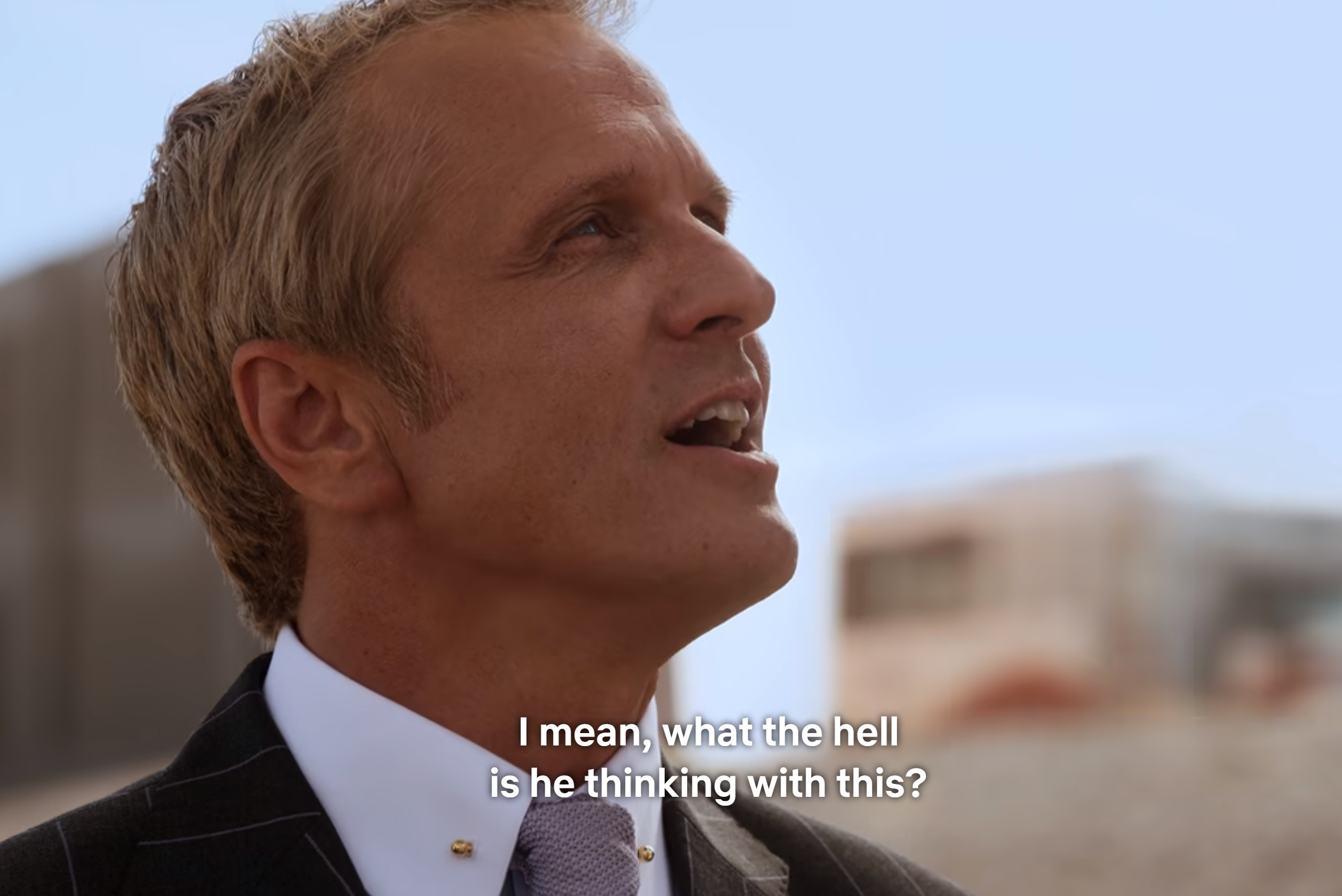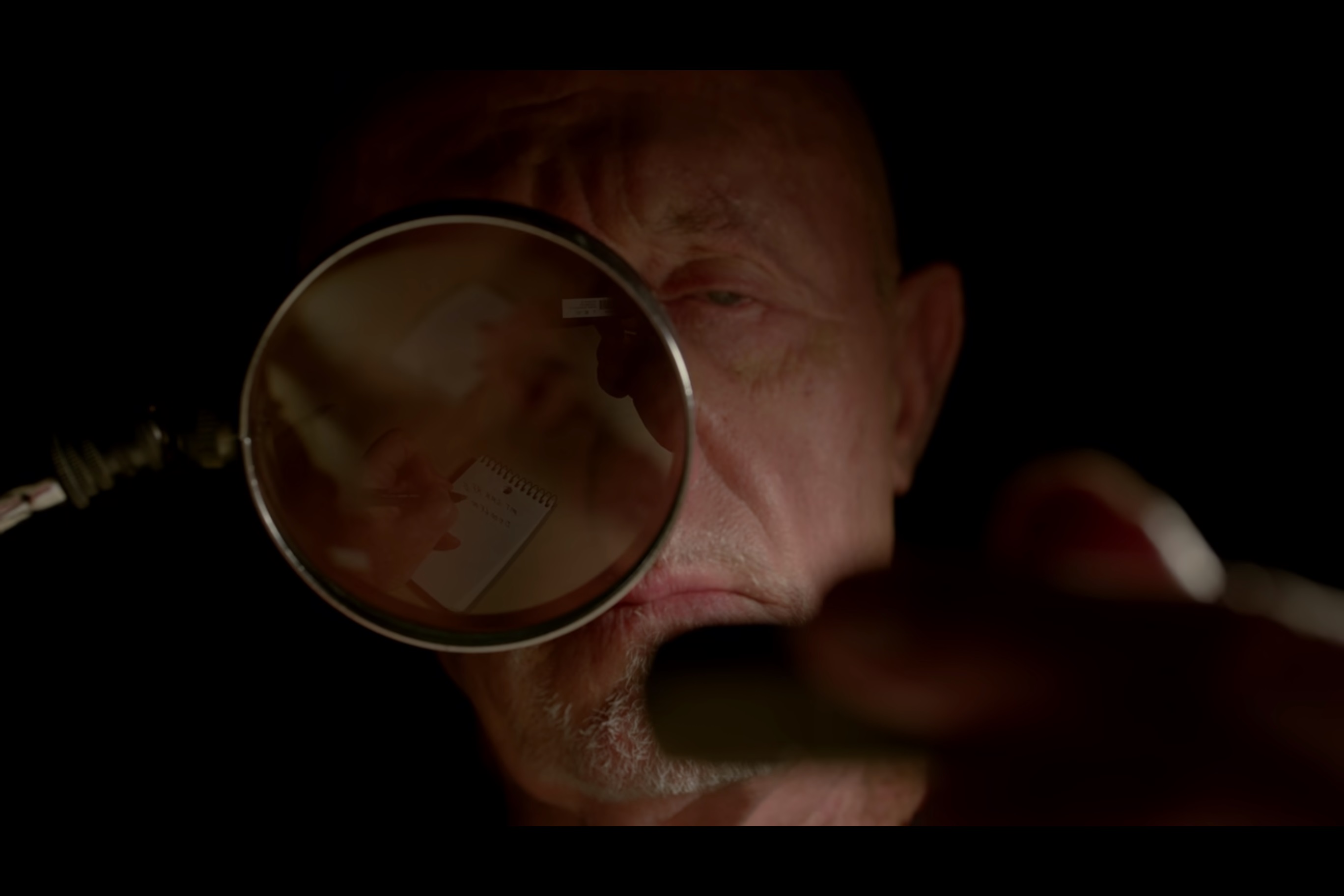 This approach also works well in building organic mystery and intensity and slowly dialing it up as we get to the final resolution or big reveal. Toward the end of Season 2, as Mike’s plan to shoot Hector in the desert with a long-range sniper nears its’ end, his car starts blaring, forcing him to abandon his plan and shut off the horn. He is left with a note, saying ‘DON’T.’ This arc continues in early Season 3, where for the most of the first episode, we deal with Mike’s paranoia and meticulous search for a tracker, as it is the only way someone could have known he was out there, and his attempt to use a similar one to find this mysterious person. The scenes span three episodes, about 40 minutes of screen time, and yet have no dialogue from Mike. This is a signature example of many Mike scenes, as they respect the audience’s intelligence and ability to interpret what’s going on.