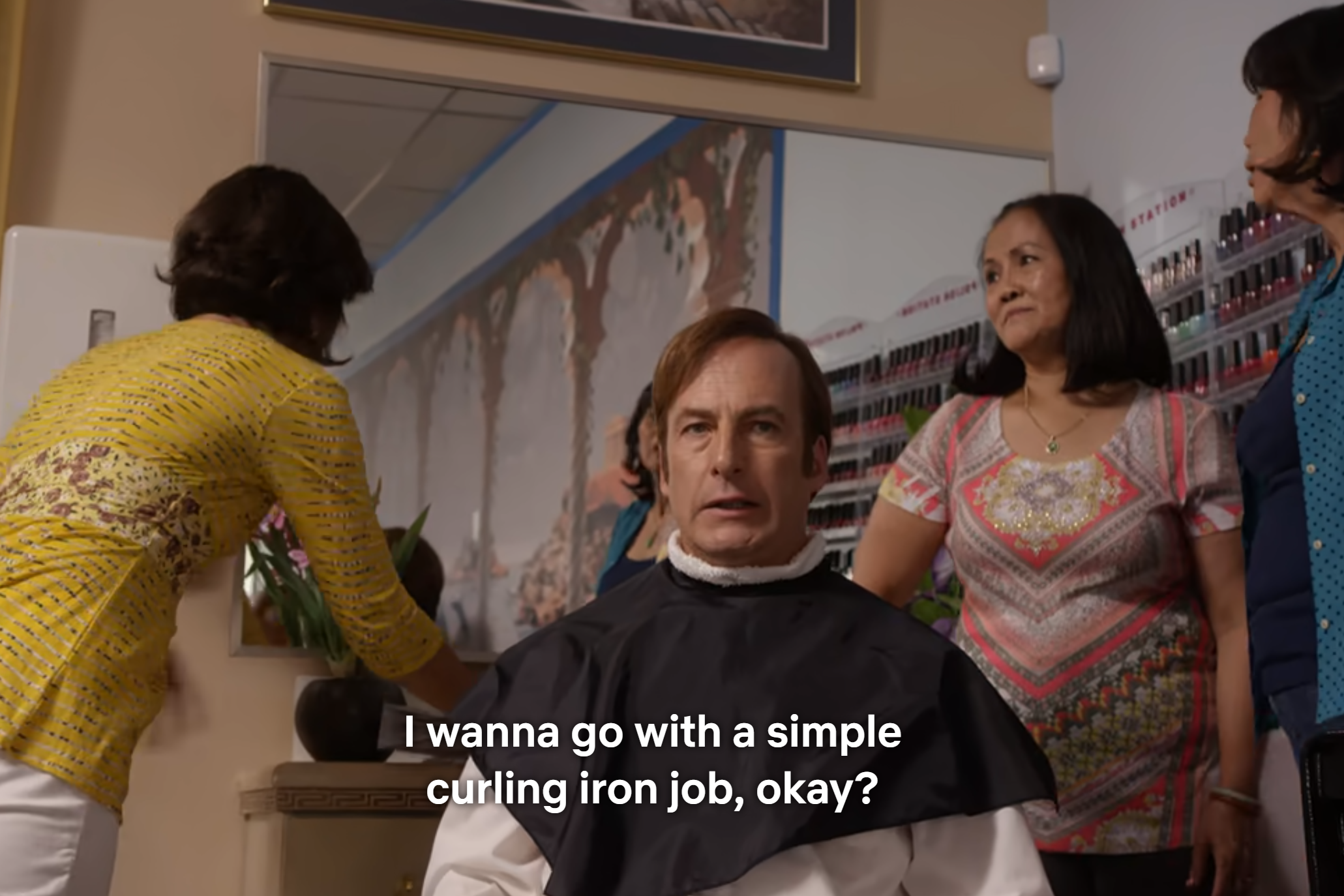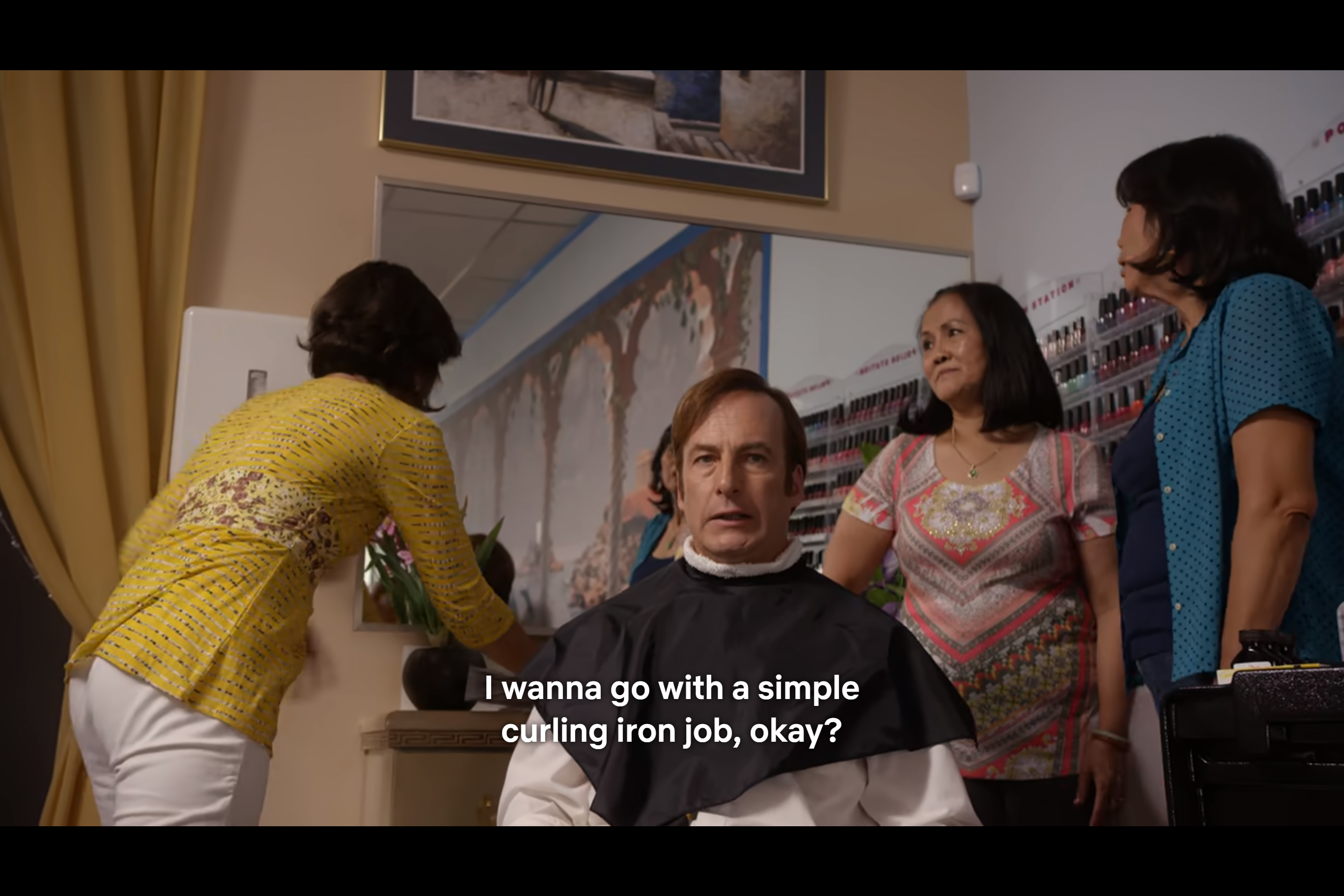 By the time we get to Jimmy changing his hair at the nail salon parlor, we’re starting to catch on.