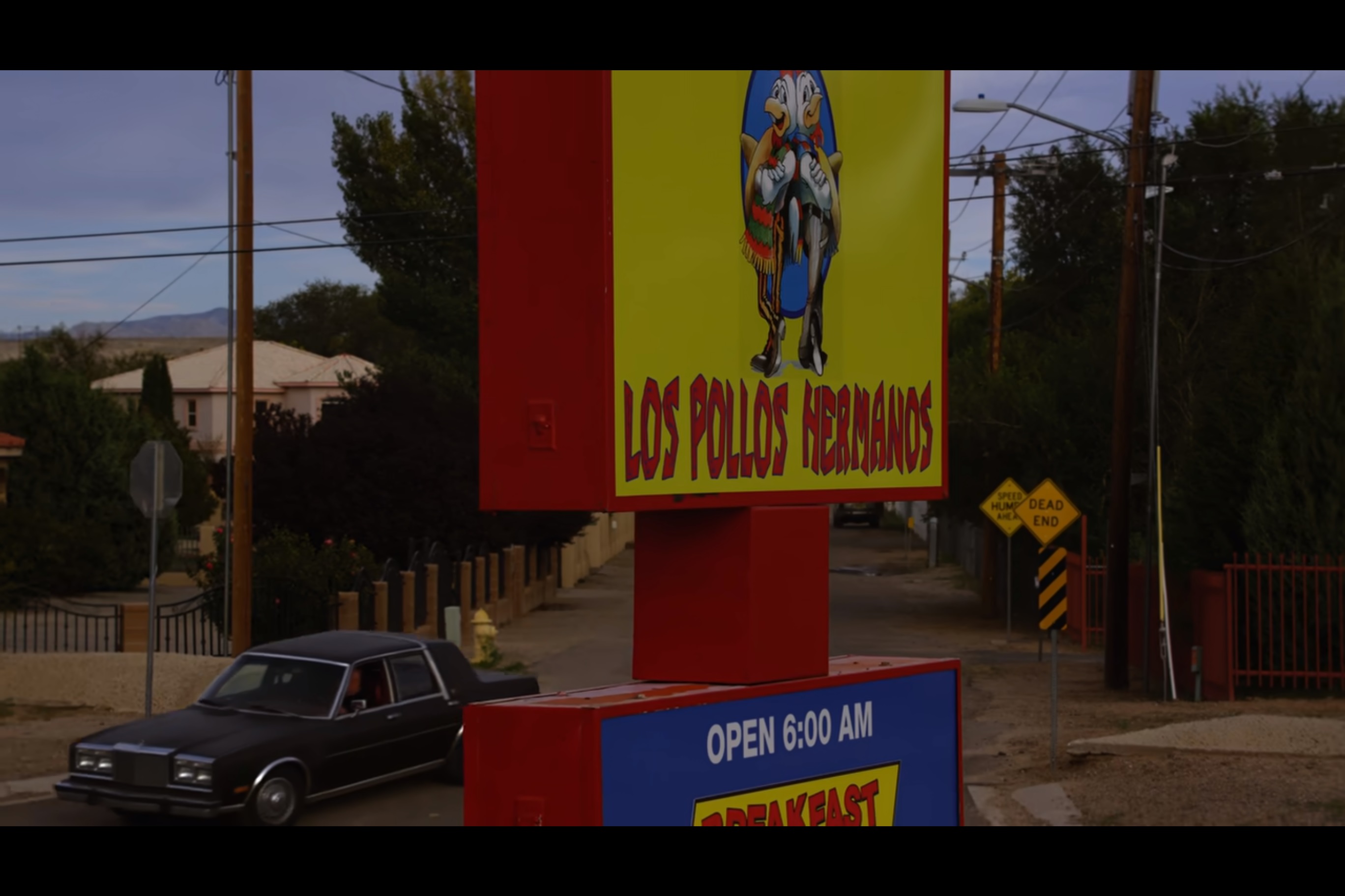 The premises happen to be ‘Los Pollos Hermanos’, which we know from Breaking Bad to be Gus Fring’s restaurant